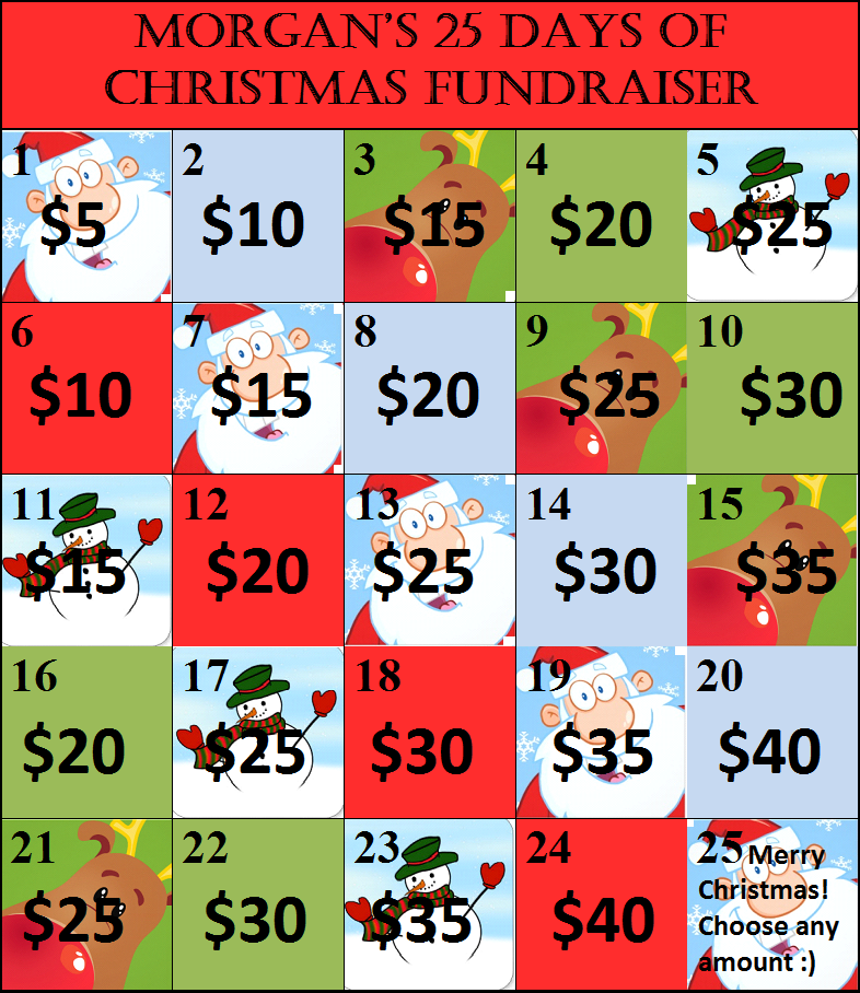 I will be posting an advent donation calendar.  There will be a different dollar amount that I will be asking for people to donate.  I will additionally post a daily Christmas themed picture on Facebook and Instagram with the amount I am asking.