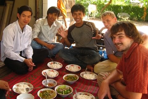 After that we returned to the first house for lunch. They were so excited to serve us Kamai (Cambodian) food. It was actually really good, lots of rice, chicken, and some type of zucchini like vegetable. There was also ground up soft shell crab, shell and all, made into a green paste, it was edible, but not something I would order at a restaurant.