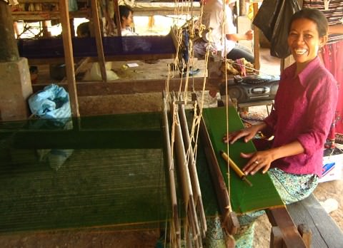 Through our conversations I also found out that we were the first foreigners to ever visit that family, and most likely the village. We took a walk around the serene landscape and got to watch the women weave intricate silk skirts on cumbersome wooden looms. Everyone wanted to practice their English with us. We went from house to house and would sit for about 10 min at each house them move on to the next one.