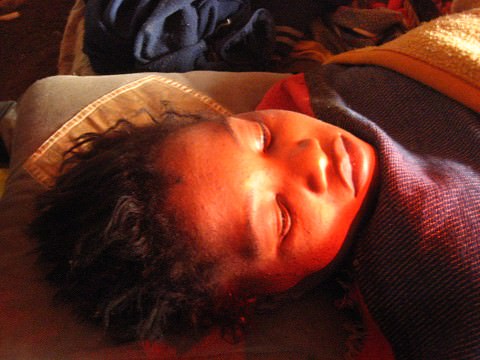 We pulled our van up to her families compound.  As I ducked from the bright day into the round stick building, it took a second to pick out figures in the dim light.  The smell of rotting flesh and smoke permeated the air; soaked into everything, burnt my eyes and saturated my clothing.  Maswane was too sick to sit up, she was on a one inch thick mattress and lay shivering under a light blanket.