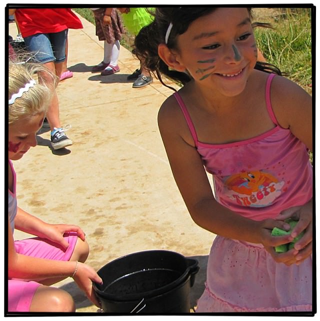 on filling water balloons for our upcoming water wars. Just outside some of the kids from our team