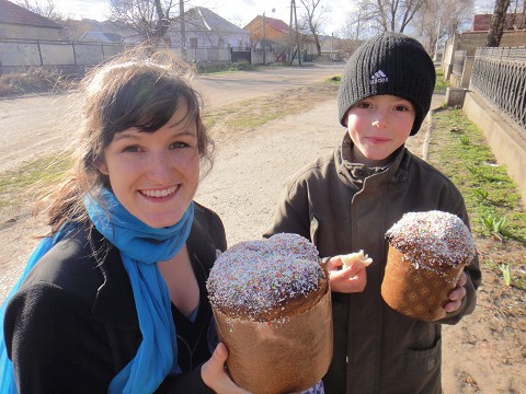 When it was all over, the owner of the bakery gave us some free bread and Easter cakes (a Moldovan tradition), and we walked out clutching our dinner and dessert/ We had walked into the bakery on a whim, never expecting to be so blessed, and never really expecting to bless anyone else, either.