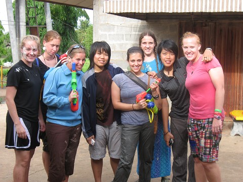 This last week here in Selapume was really great. In the mornings we would teach kids the Bible and English and in the evenings we played sports with the kids. It has been great getting to know the kids through these things. This last week was a little different as it was Songkraan Festival. This is to celebrate the New Year. This festival is basically like a country wide water/ baby powder fight. People line up on the sides of the streets with large containers of water and sometimes hoses and spray everyone who walk bye and baby powder to put on each face. People also pile in to the backs of trucks with containers of water and squirt guns just to drive around getting people wet. Being that we are pretty much the only foreigners here we were much more of a target. All week long we got soaked which was kind of nice as it is so hot here but at the same time by the end of the week you just want to be dry! We did get to participate in the festivities on the last day as Pastor and Mae drove us around in the back of their truck and the “foreigners” got revenge on the people that had sprayed us all week. We all had a lot of fun with that.