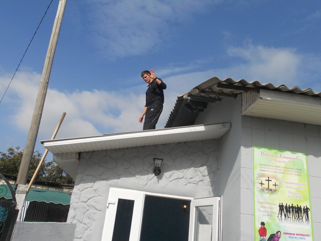 hard it went on the roof. Thankfully Caleb is a monkey and climbed up there to