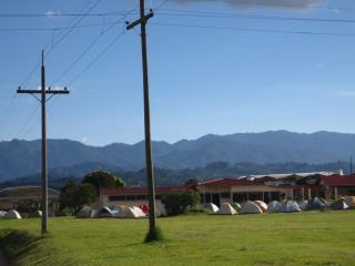 It is the rainy season here so it rains usually mid-morning and then around 4pm. Today we eventually got to our location at 4 o’clock; we began to try to set up our tents in a hurry because the rain was starting to come. It began pouring so we all just ran inside the building to wait it out. In a few minutes it stopped so we went back outside to quickly set up our tents before the next rain. Fortunately it only sprinkled a little bit after that. It’s actually pretty chilly and I’m really enjoying my North Face jacket, thanks Mom for making me take it. 😉