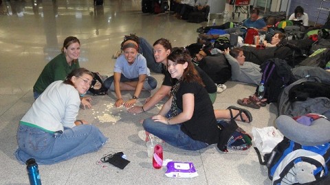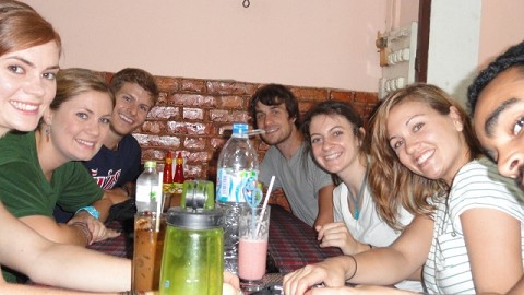 An hour later we had unloaded all of our bags from the bus (which by the way we had to pile in the seats and isles because there wasn't enough room under the bus). After we got our passports stamped to get into Vietnam, we went through 'security.' It is very hard to take off a 20 pound daypack and a 50 pound backpack, put them on a conveyer then immediately put them back on before they get pushed of by the next person's luggage. Oh, and while all of this is happening, the 'security guard' is not even watching the bags that are being scanned… he is turned the other way. Okay, so here we are in Vietnam! We load everything back onto the bus and we're back on the road! Only 2 more hours until we get to the hostel!