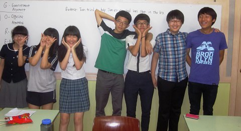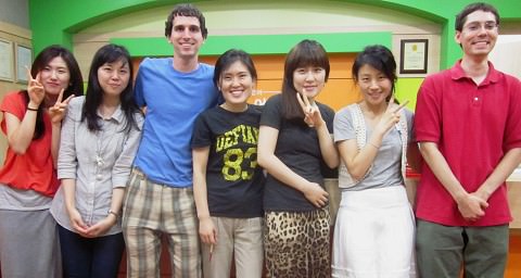 My fellow staff members at our English Academy. From left to right: Chloe. Rachel. Me. Geena. Stephanie. Lauren and Josh.