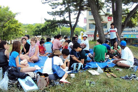 Our small English church service on a picnic. We have Americans, South Africans, Koreans and Filipinos!