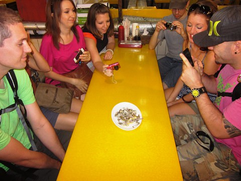 Octopus eating time! Fresh and still wiggling – and yes I tried it!