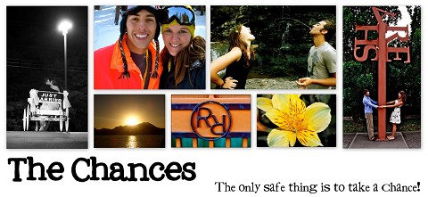 We are the Chances! We were married on October 24th, 2009 and have been totally loving married life. Our prayer for our marriage and our lives is that they will glorify our Lord, that our relationship and the relationships we have with others will bring praise to His name, and that everything in our lives would point to the beauty of the freedom and redemption we have in Jesus. We love to be outdoors and enjoy God’s insanely beautiful creation. Yes, we like to climb on rocks. A little disc golf never hurt anybody either (except for when Carrie pegged one of our friends in the back of the head with a disc). We also really like to get down to some live music. We like to each cheeses, grow vegetables in pots, stare at each other for prolonged periods of time, ride bicycles, eat ice cream, pull hairs off of each other’s backs, practice our tennis, ping pong, baseball, hula hooping, dart throwing, flying, waveboarding, juggling, and slalom skiing skills by playing the wii and then telling ourselves that we just exercised enough to not really go exercise. Here’s a few more diddlies about each of us: