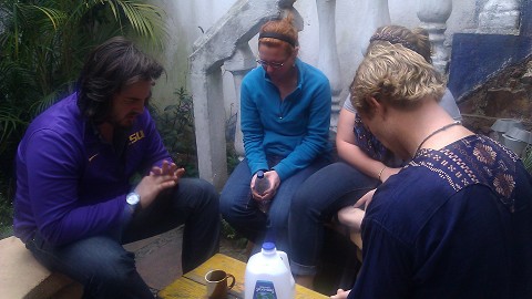 Prayer time! Every day before we do ministry as a team we get together and pray that he would bless our day, and go before us in all we do.