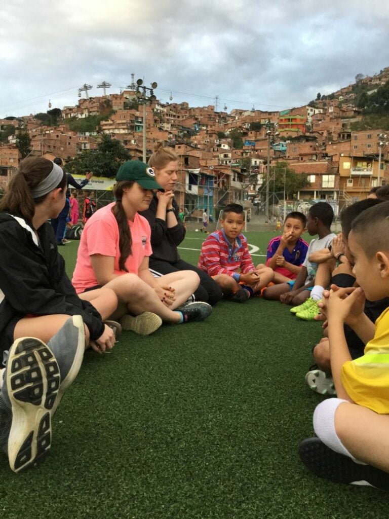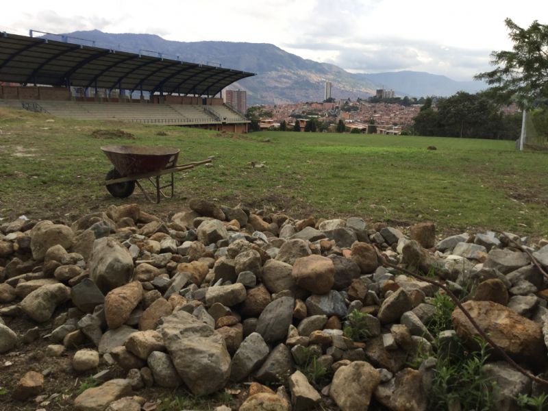 For our first time leaving the soccer stadium since arriving, we went to a soccer stadium in Medellin to lead a Bible study before practice with the kids and then to play soccer with them. On our way to the field, Marcos told us a bit about this place. It was a field known as “the dump” and it was nothing more than a place where people would dump their trash, and it was a good place to hide a dead body. The field was located right on the line between where the guerrillas, police, and gangs had divided the streets for years.