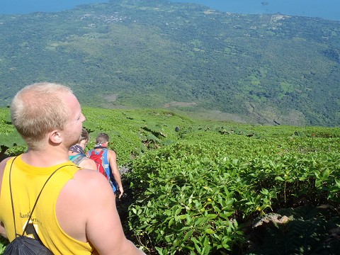Up in the clouds…over the edge was a huge drop to the volcano (guide told us not to go up there, so naturally, we did).