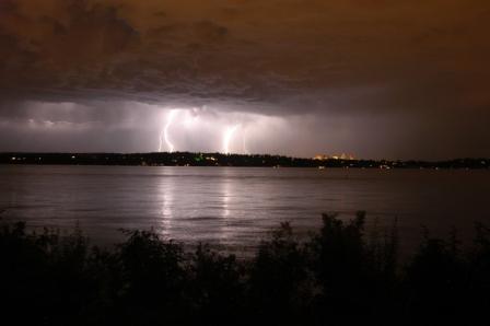 The concert of lighting was growing as I paddled in to center stage. There were stars directly above me but in front was a grand show. Burst of light lit up the billowing clouds. Streaks flashed down to earth temporarily blinding my eyes. I dare not venture any closer or become one with the ensemble. I began to back paddle reestablishing a comfortable safety of margin. The storm subsided along with my heartbeat.
