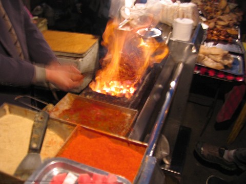 Street food.  Very tasty and Cheap.  I could get a whole meal for less then 1 dollar.