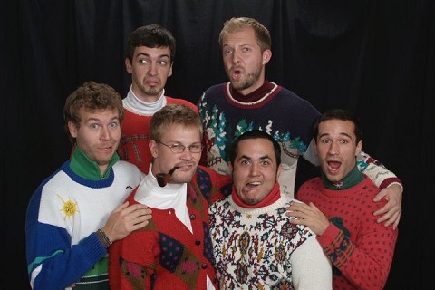our ugly Christmas sweaters for our family portrait. Oddly enough,