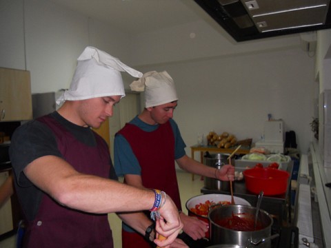 Jeff and I cooking some delicious fajitas, complete with "chef hats"