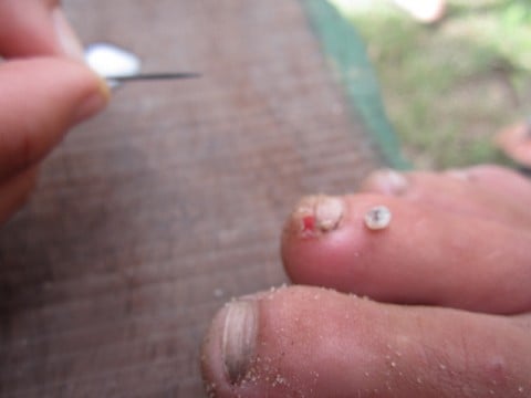 That's my toe and the worm that came out of it!