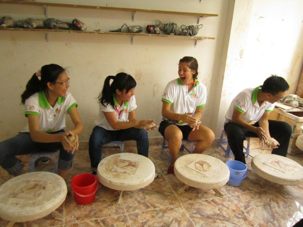 2. Find a pottery shop (with only 2 bikes for the 4 of us) and throw/paint our own bowls. My artistic skills + instructions in Vietnamese= hilarious.