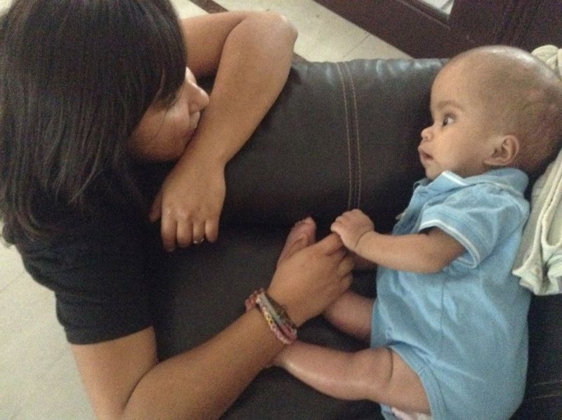 Cuando lo conocí el estaba recostado en un sofá con su cabecita el brazo del asiento ya que por la condición de hidrocefalia el no podía sostenerla. Con sus grandes ojos el mantenía su mirada en mi y yo la mía en el. De repente el me regalo por primera vez su hermosa sonrisa de la nada. Eso es todo lo que yo necesitaba para enamorarme de el. Luego de eso pase cada mañana adorando y leyendo la biblia con el. Cada vez que entraba a su cuarto y lo llamaba por su nombre, su rostro se iluminaba como fuegos artificiales.