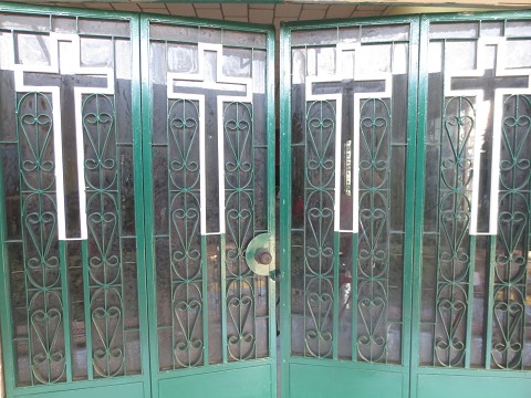 As a team we start the day with a devotion at 7:30 [we each have a day we're responsible for, I'm Thursday], an head over to the church for 8. Then we paint! B'ys are painting a mural in the classroom downstairs, an we paint the outside walls of the church, doors, an rails.