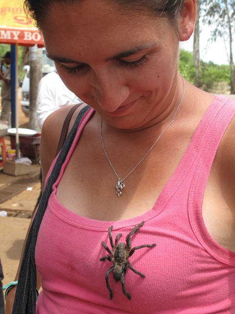 Nicole was scared of all of the local food but was extra thankful for the local supermarket that sold mac-n-cheese and pop-tarts! Nicole would make two boxes of mac-n-cheese and eat it for three days straight. Sometimes there would be “sweet chili-sauce” poured on top of the noodles; either way, it was so delicious! It is said that in Cambodia the locals eat everything except the chair and table. The locals will eat intact orange snake on a stick, and every type of huge insect, including fried tarantula. *gag me! It never fails; on every outing there is some type of strange smell lingering in the air, mostly a fishy smell. Not the best smelling city I’ve been in.