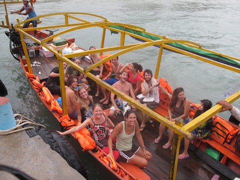 Finally the boat makes it to an island. Everyone jumps off the boat and ends up staying in the water because the water was so much warmer than the wind and rain; we were wearing life jackets over our heads b/c the rain was so painful! While bobbing in the massive waves, and laughing at our situation, all the boats on the island start to crash into each other…one boat doesn’t survive, it ends up tipped over on the shore and is taking on water. All we did was laugh at our situation. After about 2.5 hours of this, the storm calmed down and we were able to make it back to the mainland.