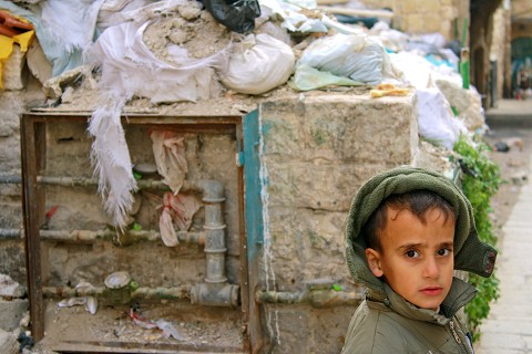 [Young boy playing in the Muslim Quarter in Jerusalem.]