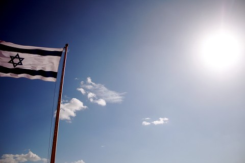 [Israeli flag on the top of Masada, which are ancient ruins from the Jewish Revolt.]