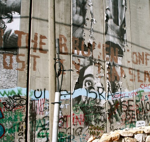 [Wall on the Israeli/Palestinian border crossing leaving Bethlehem.]