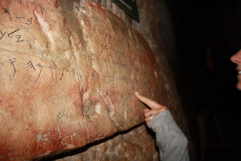 [Ancient stone in Hezekiah’s Tunnel in the City of David.]