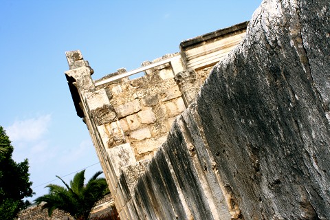 [Wall of the White Synagogue in Capernaum, the stones at the bottom are from Jesus’ time.]