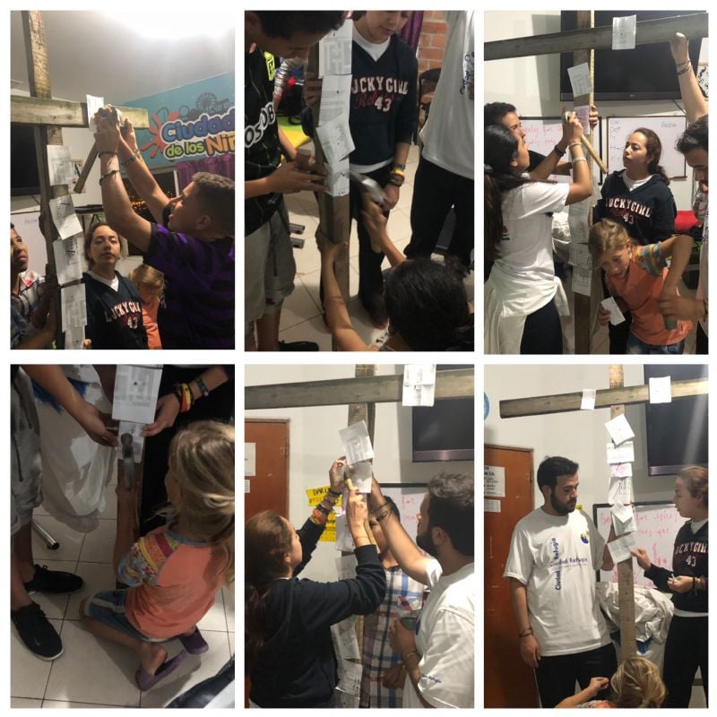 Then every single one of these beautiful kids nailed his and her sins to a physical wooden cross. We discussed the fact that Jesus died for all past present and future sin. We discussed change, and how if we want to be more like Christ, then we must change. We are all forgiven, but we have work to do. Our pieces of paper with our sin were ripped off the cross and ripped to shreds.