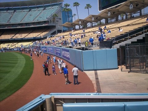 It was Girl Scouts of America Day at the ballpark, and Dad just happened to be walking by the entry gate as they entered the field and just jumped in the line with them! He’s the big guy in the gray waving! Ya, my dad is THAT cool.