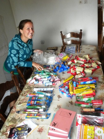 The kids at Herald Church raised A LOT of money for us to use towards ministry, and we are SO excited to get to use it towards projects throughout the rest of our world race journey! Since I used a lot of pictures from one specific visit to a gypsy village, I asked Pastor Zsombor if we could go back to that village on our last day to give out gift bags to the children. I kind of had to work hard to make it all happen before we left Tirgu-Mures, but we were able to do it! We bought soap, toothbrushes, toothpaste, cookies, candy, notebooks, and pens to make about 40 little goodie bags for the children.