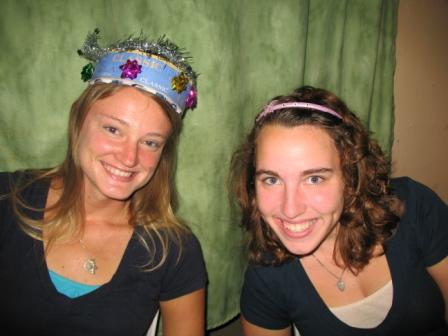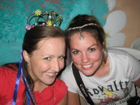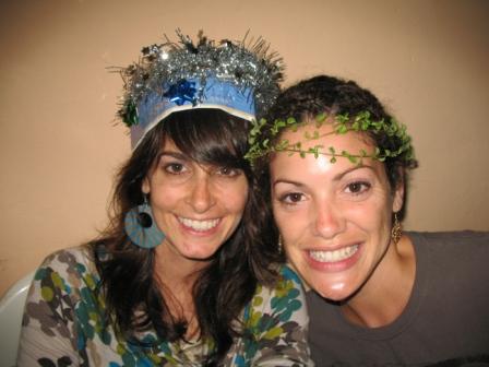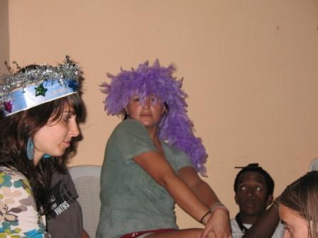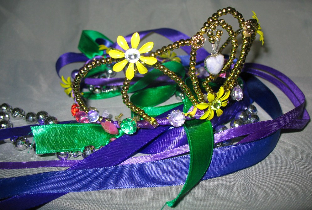 After buying some cheap earrings, Christmas beads, ponytails, ribbon, a cheap wire crown, and some superglue… here’s the finished product!!!