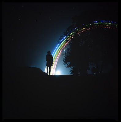 With a heavy sigh, You turned and looked at me. You grinned softly at me, and put Your arm around my back as we sat together on the rainbow, then tugged me a little closer to Your side.