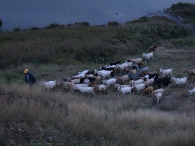As I sit upon this hill, I notice a Shepard man leading his flock. He walks with a staff in hand and a slight limp in his walk. Years of sheparding his sheep that he has done, is clear. As I am watching the goats/sheep follow him, I noticed one goat fall back. Th