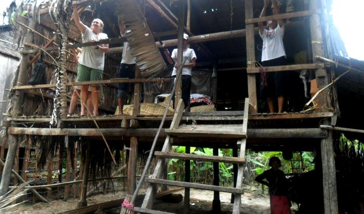 Quickly after arriving I realized my hopes for our conversation were dashed. Silly American me forgot not everyone speaks English. Actually as far as I can tell here- very few people can speak or understand English. We had a translator/local with us so even though the conversation was null the house reconstruction was still a go. My team mates and myself were either part of the “demolish crew” or the “clean up crew”. We tore down the palm leaf siding and roof so that it could be replaced with new leaf siding and a nice zinc roof and then helped clean up the mess of leaves that then covered the ground. As for my part in all that, well honestly I spent more time jumping on and trying to kill cockroaches during our time there then actually cleaning up the leaves. With every chunk of leaf they cut off her house it came tumbling to the ground with about five or so cockroaches that then came scurrying out and on to me and my team mates.