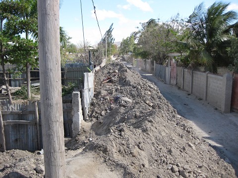 When we got back, we learned about the devistation that had happened in Gonaives.  Rapid deforestation in the mountains has left the area vulnerable to floods and in September of 2008 the worst happened.  The entire town was covered in several feet of dirty, muddy water.  Anyone that had a second floor was forced to remain there while the flood waters were high.  Those in single story houses were left without an option – many found shelter where they could, and others lost their lives.  The waters eventually receeded, but left the town caked in several feet of mud.  The villagers have done impressive restoration work in the last 5 months, clearing out the streets and businesses, but many houses (especially those who are less fortunate) have not been able to clear away the mud.