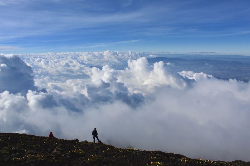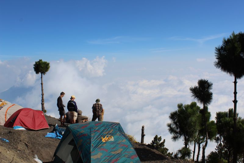 This last weekend, me and my team hiked up Volcán Acatenango. It’s the 3rd largest volcano in Central America. With an elevation of just over 13,000 feet, it was no easy task. For a droning 6.5 hours, we trekked up the dirt ridden trail to summit. It was the hardest hike I’ve ever done, and at the same time, the most beautiful thing that I have ever seen. After reaching camp at the top, we settled in and dropped our 30lbs packs. What a relief as we still had the remaining hour and more to the summit. We took a three hour nap after the first portion of the hike, before taking off. It was much needed as our heads were spinning and our legs were exhausted. Fuego boomed in the distance ejecting lava and ash high into the sky while simultaneously sending shockwaves from the blast across the valley to bounce our hearts. it was about 60 degrees farenheight at camp, and as we began our trek up the summit, it decreased further. Through ash and dust we trudged up the trail to the peak. Every step forward concluded with a half step slide backward. We picked our steps wisely as we journeyed through trails hugged by drop offs and cliffs boasting hundreds of feet. On the final portion of the climb, we weathered the wind and clouds that seemed to blow right through us. After the last few steps, all weight was lifted, as my team and I walked above the clouds.