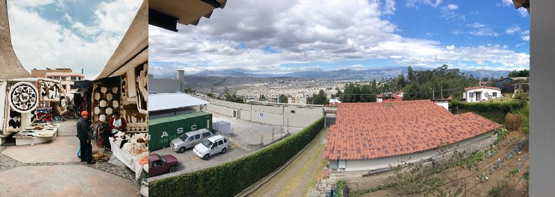 The photo on the left is from Otavalo, the largest market in South America. The photo on the right is the view from our hosts’ home overlooking Quito.