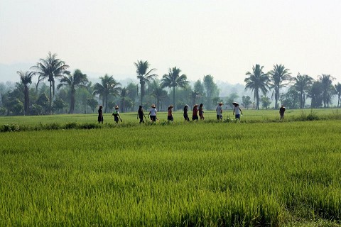 -Wake up at 6am. Why? Because no one in Thailand sleeps past 5:30 in the morning. For some reason this country is filled with morning people, a concept I cannot grasp. 6 in the morning is the only time the temperature is reasonable enough for any kind of movement so I go for a run through the rice fields. Seeing the sun come up over the fields with the mountains in the background is pretty breathtaking. Then every now and then a man drives by on a scooter and hands me a couple bananas.