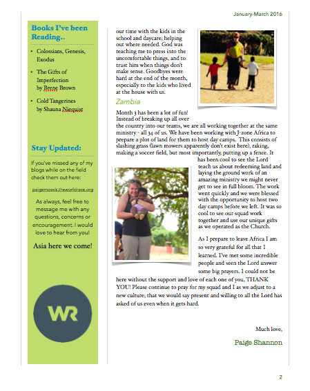 Well we’ve been in the Philippines for a week and a half now, it’s been a lot of fun! Blog post to come soon updating you all on that. But for now, check out my newsletter for the past 3 months in Africa. Enjoy!