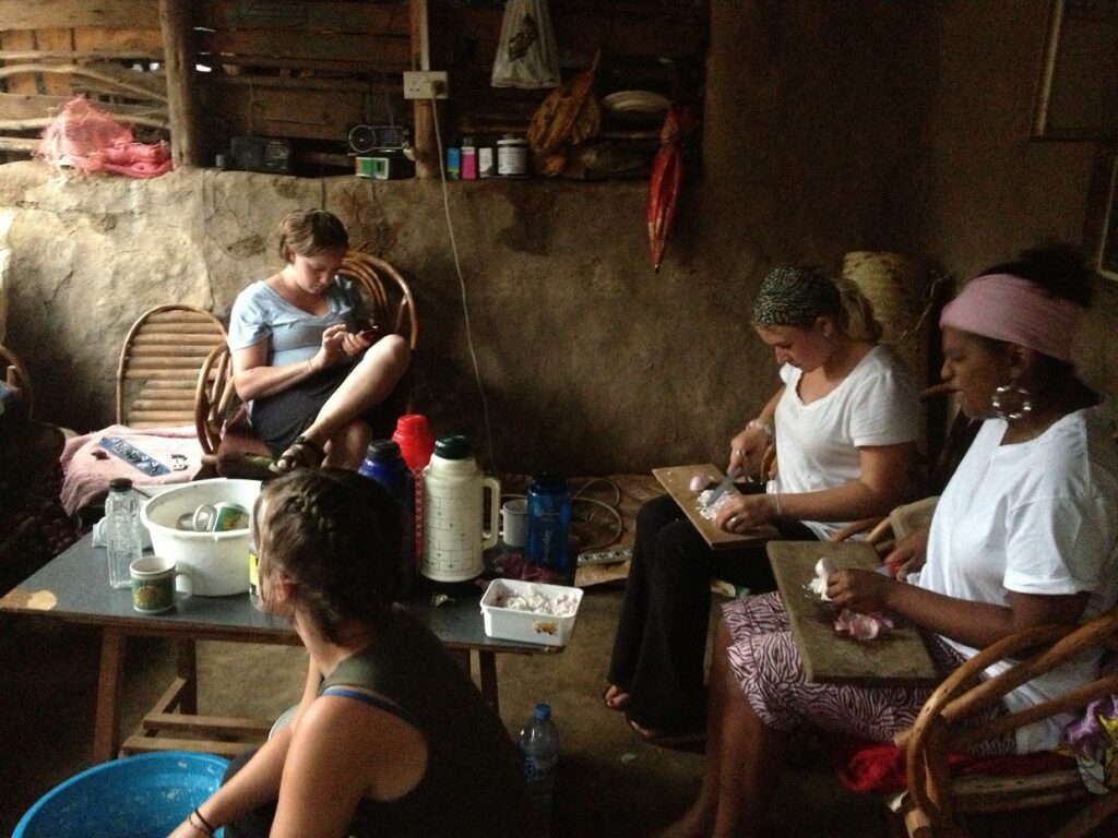 As we were drinking the chai like tea and eating the delicious, triangular homemade donuts, we were given the grand tour. We walked around the camp, which consisted of two small mud huts and an outside common area in between- which is where we found the kitchen area, the fire for cooking, the well to draw water, and the outhouses of course. We also found out where we would be sleeping. We all couldn’t fit in the side bedroom with the “extra beds,” so Grandma insisted that a couple of us come sleep in her room. She happened to have an extra mattress, so Julia and I decided to go in there. Little did we know- she was going to sleep on the little mattress and let us sleep in her bed!