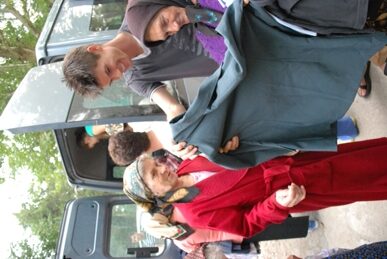 As we were walking away a lady and her elderly mother walked up. They said they heard the commotion down stairs and because the elderly woman couldn’t get down the stairs, they couldn’t get here fast enough. “We just need a coat” she said. The elderly woman was very small and frail and I was amazed that any clothing was left and astounded that the perfect coat for her was left. So I said we had saved her the perfect coat. She tried it on and praise be to God it was her exact size.