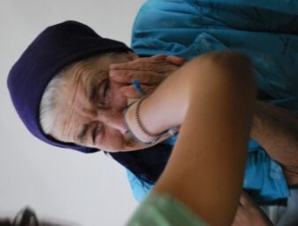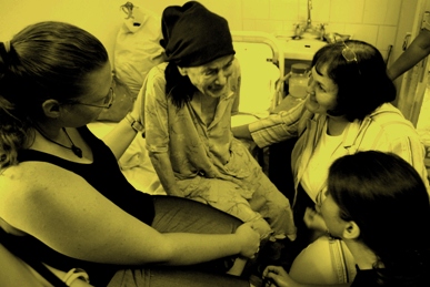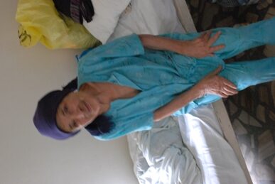 I was following everyone else with an armload of clothing for another patient, and took a quick detour to drop off those clothes and then climbed the stairs to join the rest of the group in Rabina’s room. As I walked in the door , I looked around and there was someone at every bedside and I didnt know where to go. Rabina saw me and invited me onto her bed, we just sat there and sung some songs as Tabia (our new German friend) played the guitar.