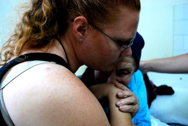 We all rejoiced with her and then the translator came back to Alexandra while everyone else continued to pray for the other ladies in the room. Alexandra was telling us her story of how she came to the hospital. She had been in the hospital for four years and then as Daniella was listening to Alexandra speak she started crying. She told us that her daughter had been murdered by her son in law, that she just couldn’t take it anymore, she wished she had died with her daughter, she was just in so much pain, so much grief. We all cried with her and I just hugged her close.