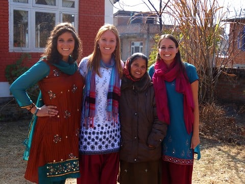 Me, Katie, and  Alyssa with the woman from our church who made our beautiful Punjabi's!