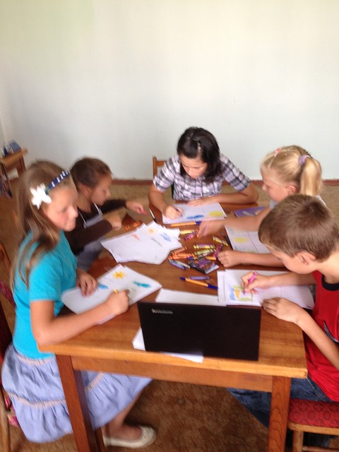 This was mine and Cassie’s English class. We had ten days of English, and the first week we had four- five kids. By the end of the week, they could say “Hello my name is.. I live in Ukraine. I am __ years old. My favorite color is.. My favorite food is. They could also say their abc’s, know what each letter sounded like on the spot, and they could count, and know how to spell the number out. Our second week, we had all new kids. Out of this picture, there was only one original person. So, we had to start fresh, and poor Ira had to pretty much review that whole week. Working with Cassie, and working with the kids were amazing. They were so open, and so willing to learn.